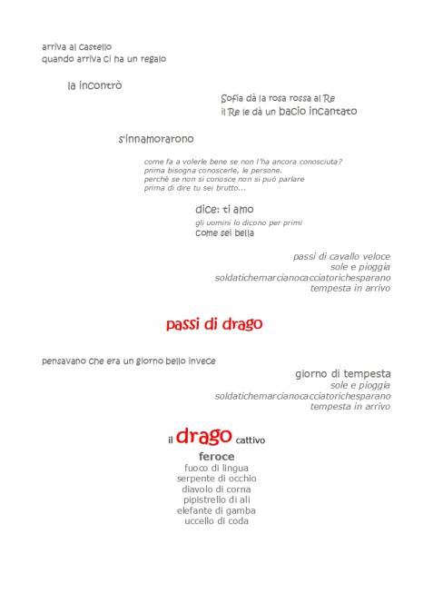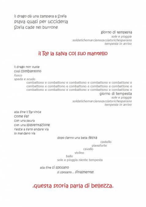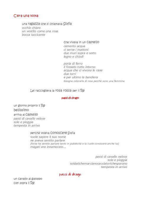 Questa riflessione, intrecciata all’interesse verso le storie - ascoltate, narrate, disegnate, unitamente al desiderio di narrarsi, sperimentare e rielaborare, produce brevi sequenze dell’incontro maschile/femminile costruite a piccolo gruppo; i testi rielaborati insieme nel gruppo sezione divengono una unica fiaba, che si è conquistata il primo posto al Premio Andersen nella sezione scuola infanzia (giugno 2012).