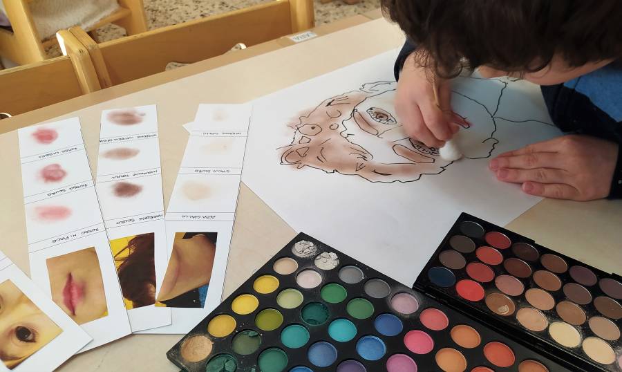 Nell'esposizione finale ai portici della chiesa, ispirata all'opera Humanae dell'artista brasiliana Angèlica Dass, si è inteso convergere nel percorso di bambini e bambine della sezione cinque anni: dare figura ciò che definisce la speciale diversità di ciascuno attraverso le infinite sfumature della pelle, e sottolinearne la preziosa unicità – nell'insieme armonico e veritiero di una società fraterna.