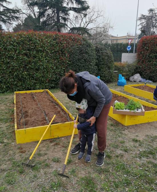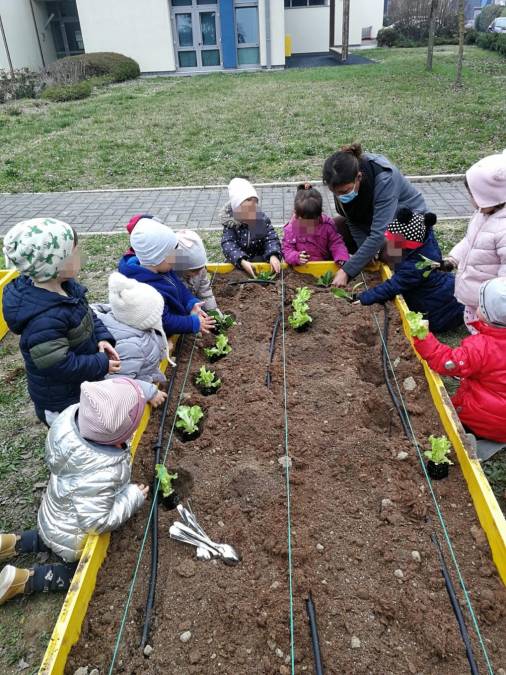 L'idea del progetto "orto scolastico" nasce e si sviluppa grazie alla collaborazione tra il collegio docenti della scuola dell'infanzia "San Giovanni Battista" e la fattoria Santa Rita di Cognento nel contesto del progetto di Miglioramento della Fism di Modena. Occuparsi dell'orto scolastico è un'attività che coinvolge tutti i bambini della scuola (sezione nido primavera compresa) e si sviluppa per l'intero anno scolastico. Attraverso le attività legate alla cura dell'orto, affrontiamo i temi della biodiversità, dell'alimentazione consapevole, dei comportamenti legati alla cura e al rispetto del verde e della natura in genere. L'orto è vissuto come spazio condiviso , quindo come momento di cooperazione con altri bambini. Con la collaborazione di qualche genitori e qualche nonno è stato individuato lo spazio più adeguato, dopodiché è stato preparato il terreno e il relativo impianto irriguo. Anche sono stati realizzati quattro contenitori di legno dentro ai quali seminare e/o piantare, destinandone uno a sezione. A metà marzo sono iniziati gli incontri con le esperte della fattoria Santa Rita durante i quali i bambini piantano gli ortaggi , si prendono cura e partecipano a diversi laboratori: terra, costruzione annaffiatoio ... Durante la settimana, i bambini e le loro insegnanti/educatrici si occupano di annaffiare, togliere le erbacce e controllare la crescita delle piantine, in attesa di effettuare un "buon raccolto".