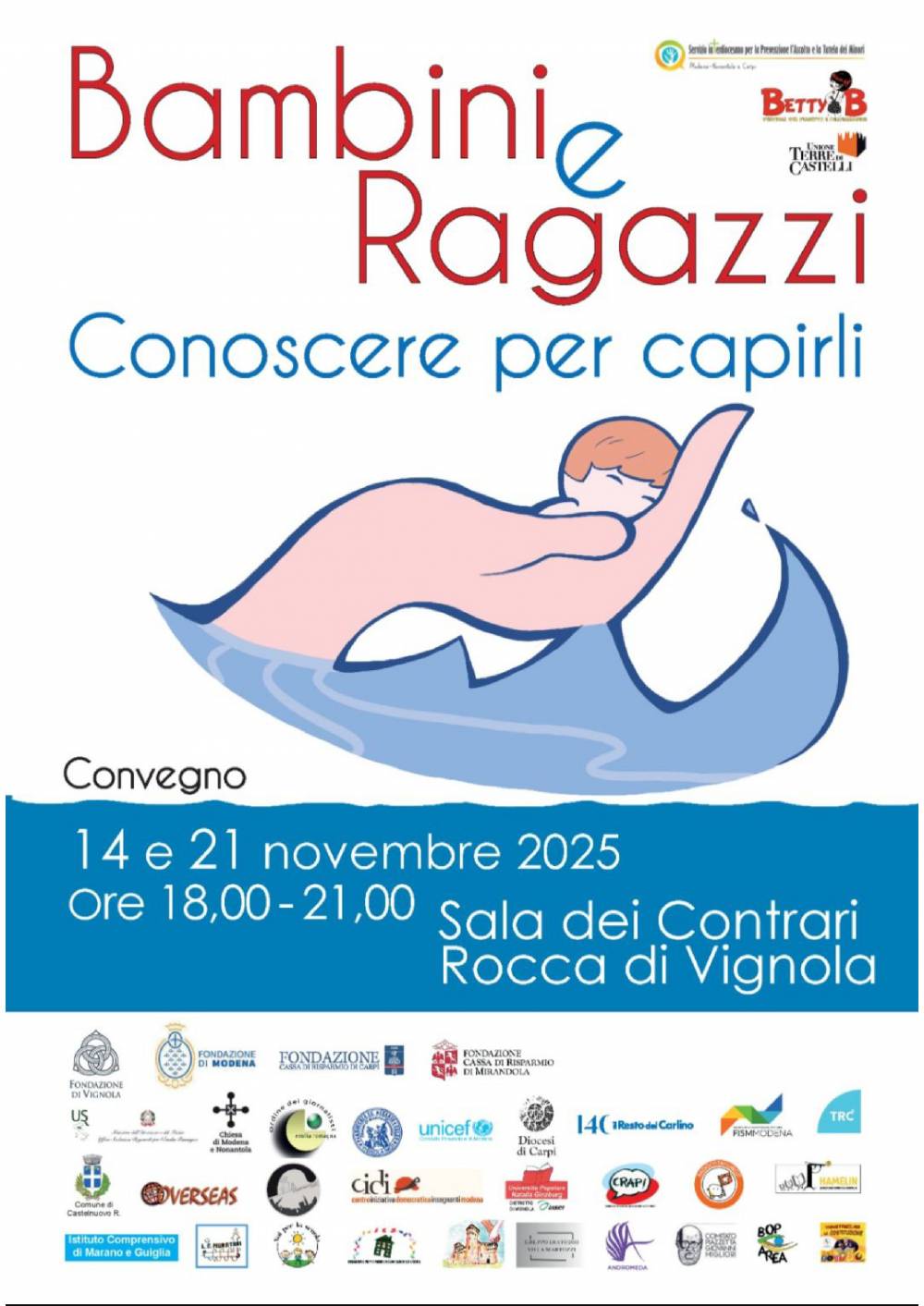 L’evento si terrà il 14 e il 21 novembre 2025 presso la Sala dei Contrari presso la Rocca di Vignola concessa dalla Fondazione di Vignola ed ha avuto il patrocinio dell’Unione Terre dei Castelli e dell’Ufficio Scolastico Regionale.