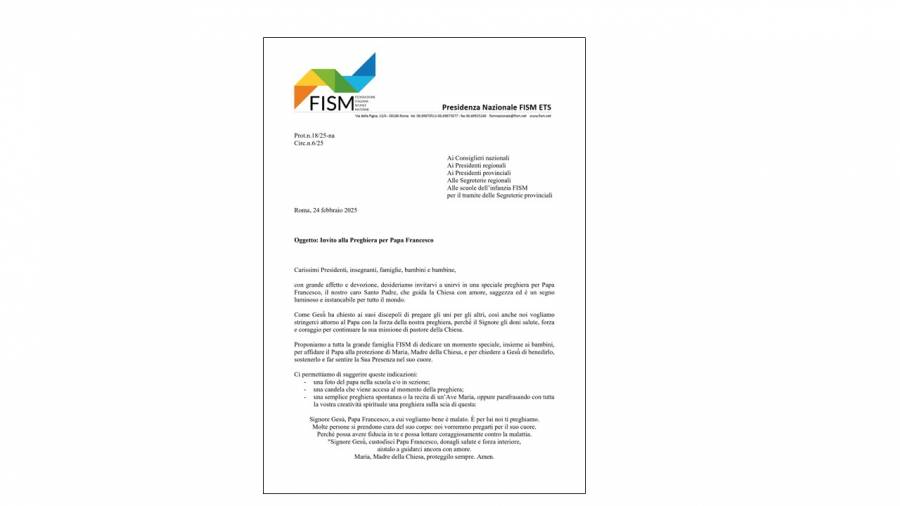 INVITO ALLA PREGHIERA PER PAPA FRANCESCO
