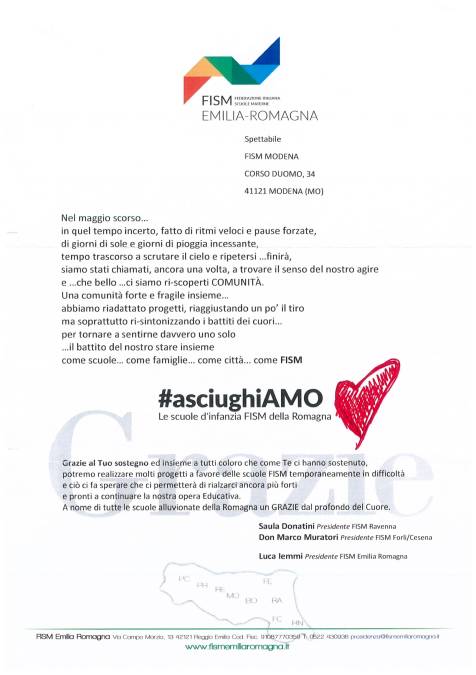 Partita alla fine del maggio scorso dopo l’invito dei vertici associativi ad offrire un aiuto immediato alle scuole dell’infanzia della Romagna colpite dall’alluvione, sostenuta anche sui social con l’hashtag #asciughiAMO❤️ la campagna di raccolta fondi promossa dalla FISM (la Federazione Italiana Scuole Materne alla quale in Italia fanno capo migliaia di presidi educativi nel mondo Zero-Sei anni) sta per tagliare il traguardo dei duecentomila euro.