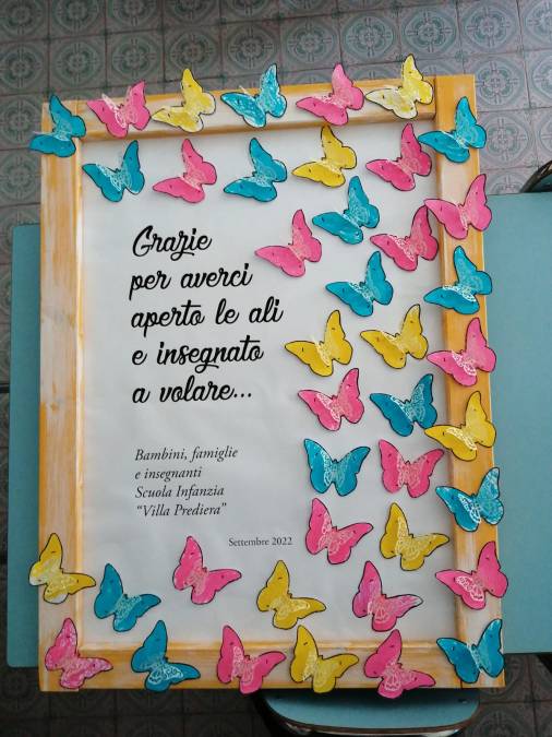 Infine le insegnanti e i bambini della scuola hanno regalato alle suore un quadro per dire "Grazie per averci aperto le ali e insegnato a volare".