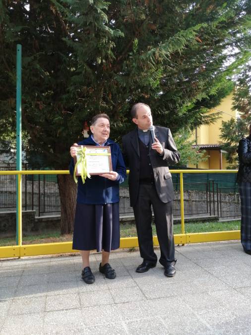 Dopo il saluto e una preghiera guidata da don Roberto, il presidente provinciale FISM don Alberto Zironi, accompagnato dalla vice presidente Daniela Lombardi, il segretario Alfonso Bortolamasi e il cosigliere rappresentante di distretto don Luciano Benassi , ha consegnato una targa a suor Carla Calderoni per ringraziare "per la generosità e l’impegno profusi nel sostenere il lavoro della Federazione e nella promozione della cultura dell’Infanzia".