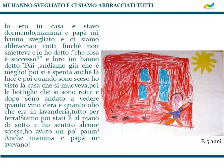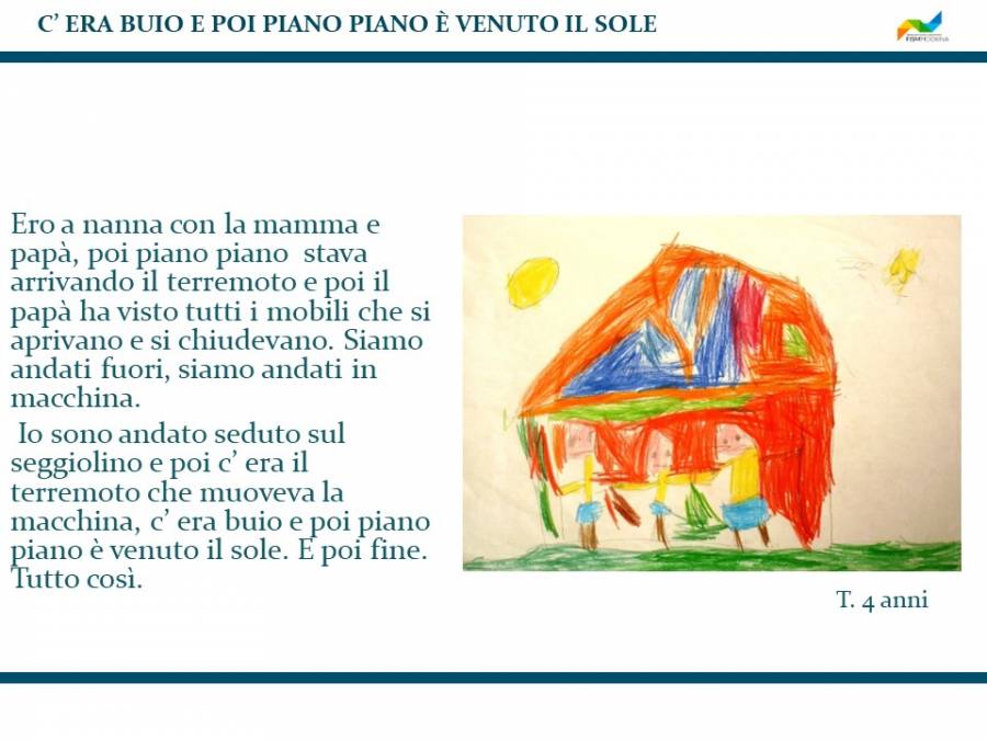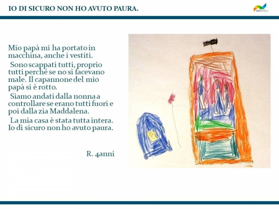 Se siamo quello che siamo, se siamo "usciti" dalle nostre aule, se abbiamo iniziato a conversare con i bambini, ascoltando i loro grandi pensieri con più attenzione se abbiamo scoperto la solidarietà se siamo un po' cambiati, se oggi ricordiamo per riprenderci gli insegnamenti che questa drammatica esperienza ci ha insegnato, se abbiamo reinvestito questo insegnamenti nelle nostre vite e in quelle di chi ci sta accanto... possiamo dire che la nostra memoria ha lavorato guardando avanti!
